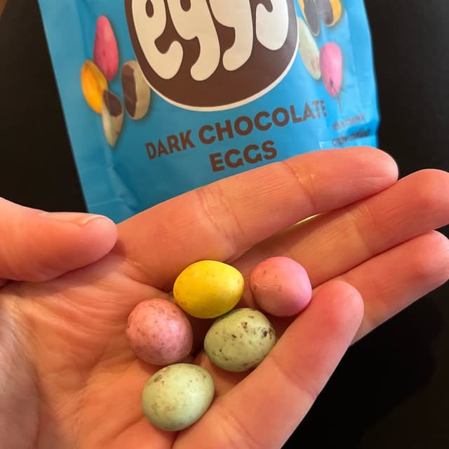 These chocolate eggs have a strong candy shell! Like, really strong 😆 They hurt my teeth a little bit it’s worth it. They are filled with a hard dark chocolate. A nice little snack, especially with coffee.