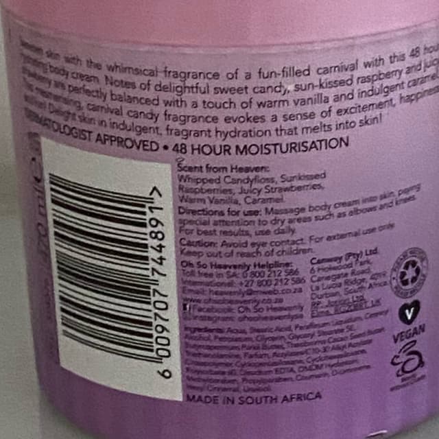 Candy floss & caramel scented body cream. Wish the consistency was a bit thicker but the scent is divine.