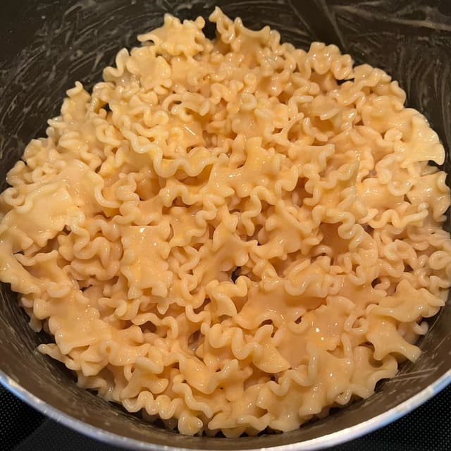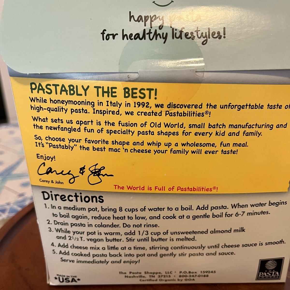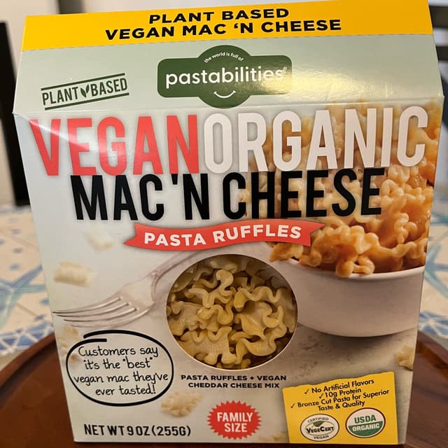 Good Day Pasta Ruffles Vegan Cheddar boasted as being the BEST vegan Mac and cheese. The pasta cooked up nicely, very tender texture. The cheese powder cooked up very smooth. I used Country Crock Avocado Butter and Chobani extra creamy oat milk. The flavor was okay. I did add hummus to it and for lunch the following day, I added some mashed sweet potatoes. 😋 It made a lot!!!