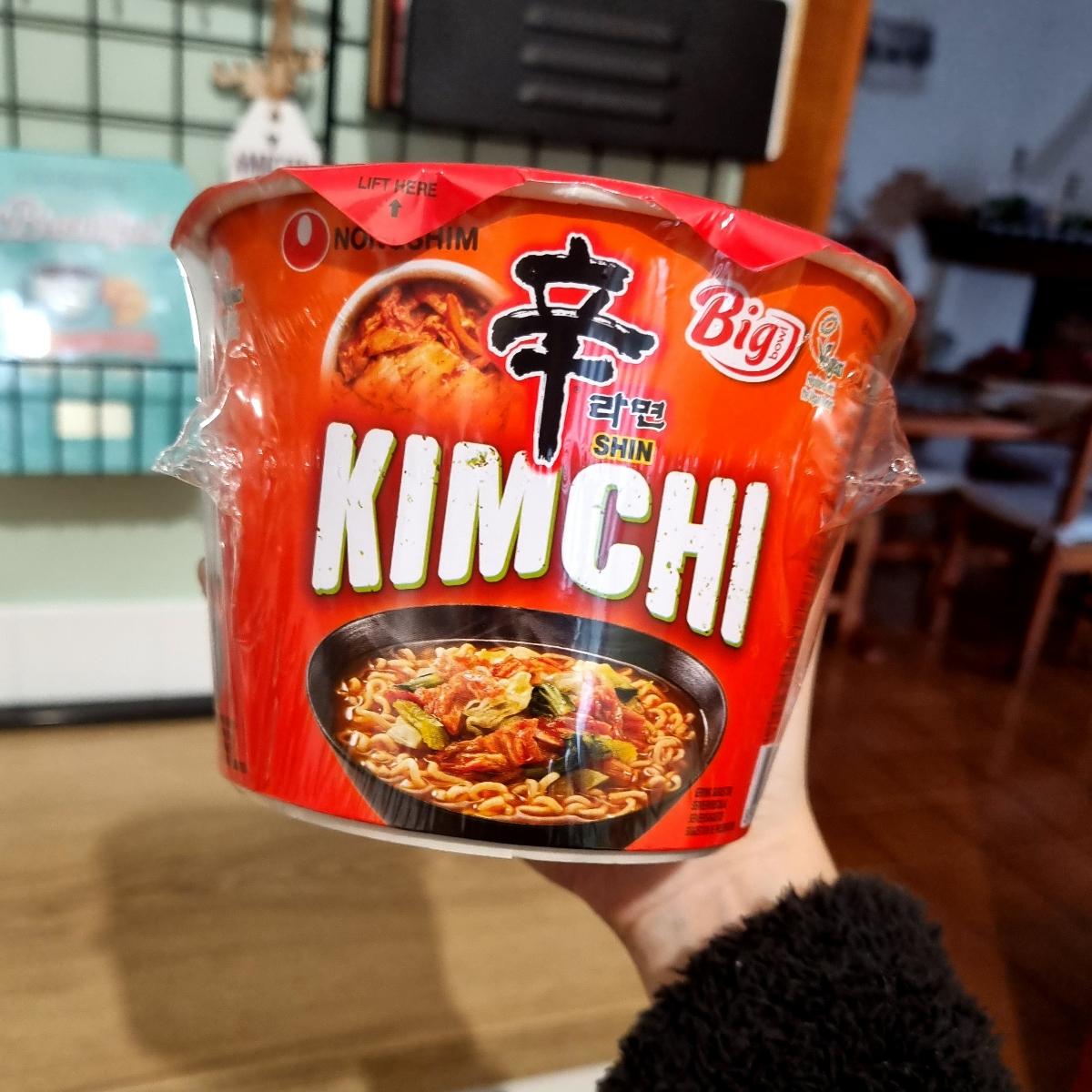 Ramen al gusto kimchi leggermente piccante. Questo è il formato più grande e si prepara in pochi minuti mettendo semplicemente la bustina di preparato e l'acqua bollente.