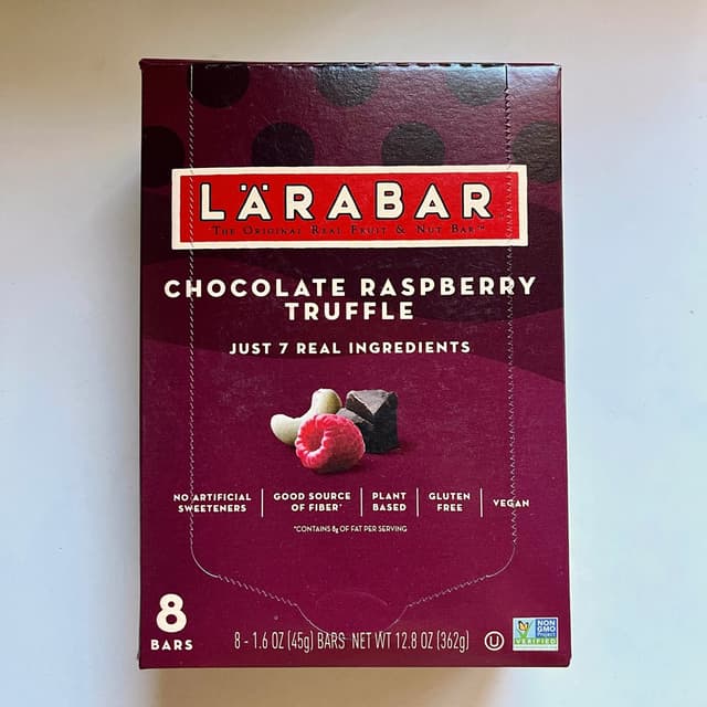 What exactly are Lärabars? I think of them as a sort of less-processed candy bar, especially if you refrigerate them beforehand, which helps to solidify that sticky date texture. Having tried a handful of different flavors (5+ now,) I can confidently say that this #chocoholic and #berrylover pairing is easily my favorite. It actually tastes like dessert. I like that it’s made with real #raspberry that you can taste and feel. Of course, that means lots of little seeds, which can be vexing; keep some dental floss nearby. I also appreciate that the #dates don’t overpower the rich #cocoa flavor.