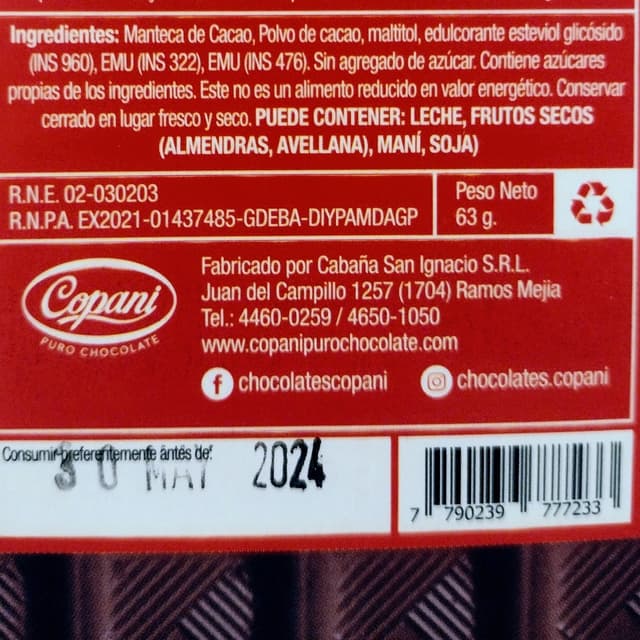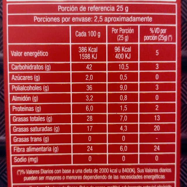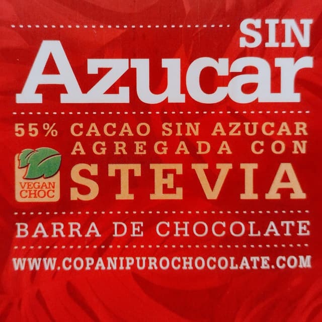 Una barra de chocolate muy rica. Me sorprendió lo sabrosa que es a pesar de no tener azúcar. Me encantó que usaran stevia para endulzar.