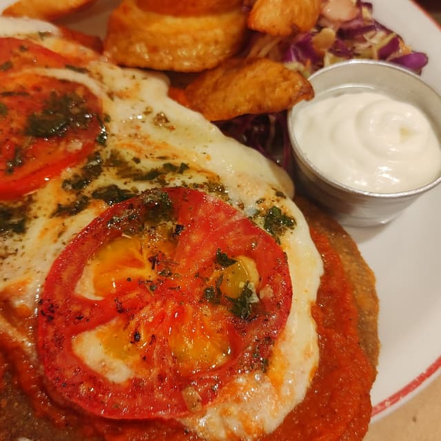 Muy buen sabor, gran tamaño. Viene con papas, ensalada coleslaw y mayonesa alioli muy suave.