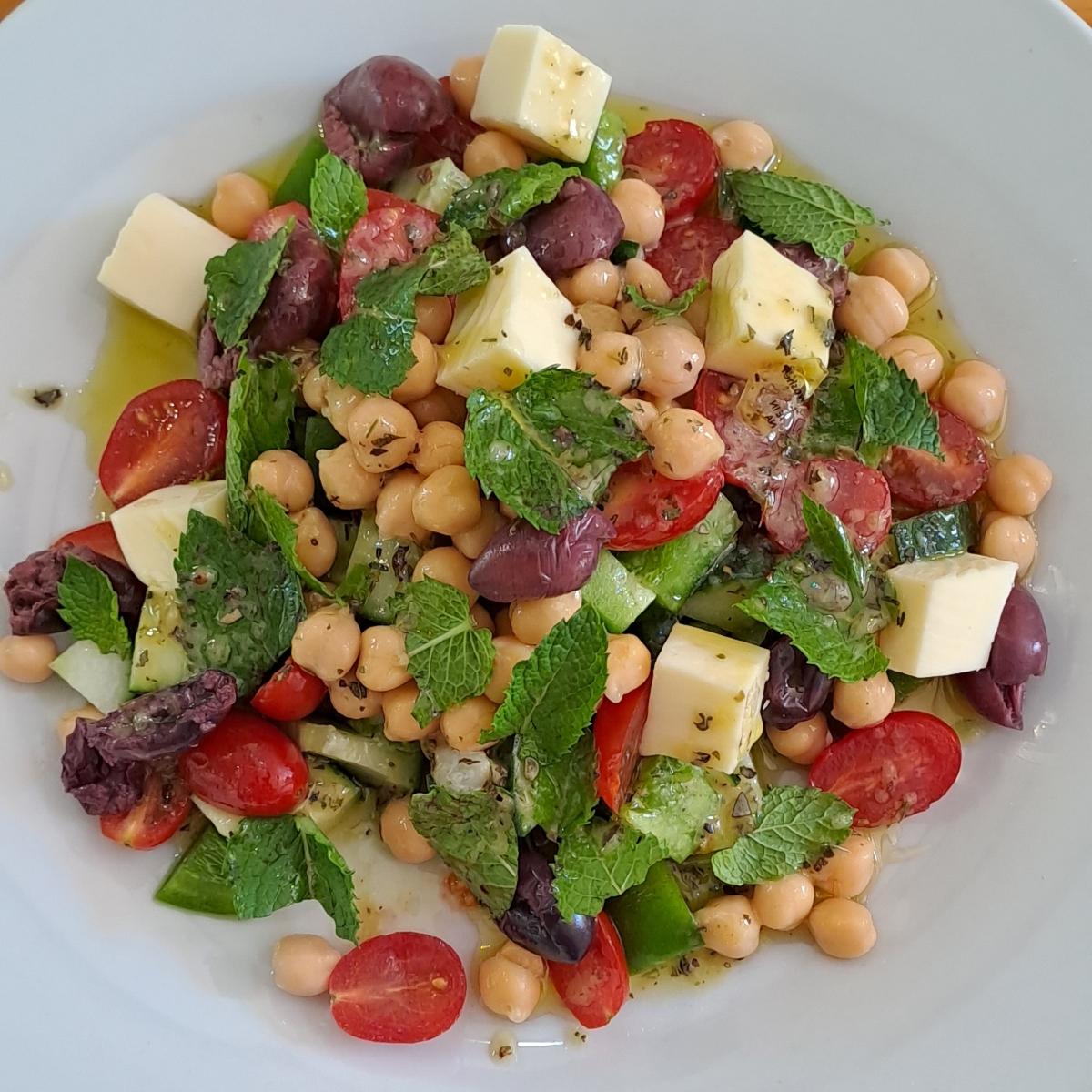 Super fresh and zingy tasty salad with chunks of violife vegan notzarella cheese. The dressing is so generous I needed a spoon but I wasn't complaining!