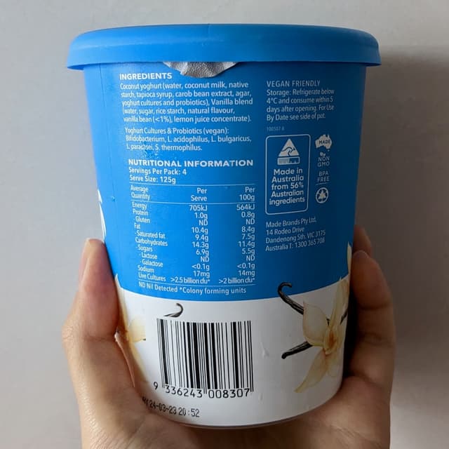 Texture leaned towards being fluffy like whipped cream. 🥛🍦 The vanilla scent was mildly sweet, not too overwhelming! My non-veg sis (who doesn't usually like vegan products) liked it as she said it resembled dessert! Contains 5 strains of live cultures / probiotics. 💚 Most affordable vegan yoghurt available in supermarkets in Singapore~ P.S. Cocobella Lifebar, a vegan yoghurt dining concept, is slated to open in One Holland Village mall in early 2024! ✨ ($9.12 / 500g on RedMart Lazada, also available at selected FairPrice and Cold Storage supermarkets) #sgvegan #sgdessert #yoghurt #yogurt #veganyoghurt #veganyogurt