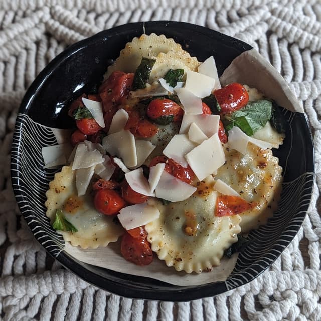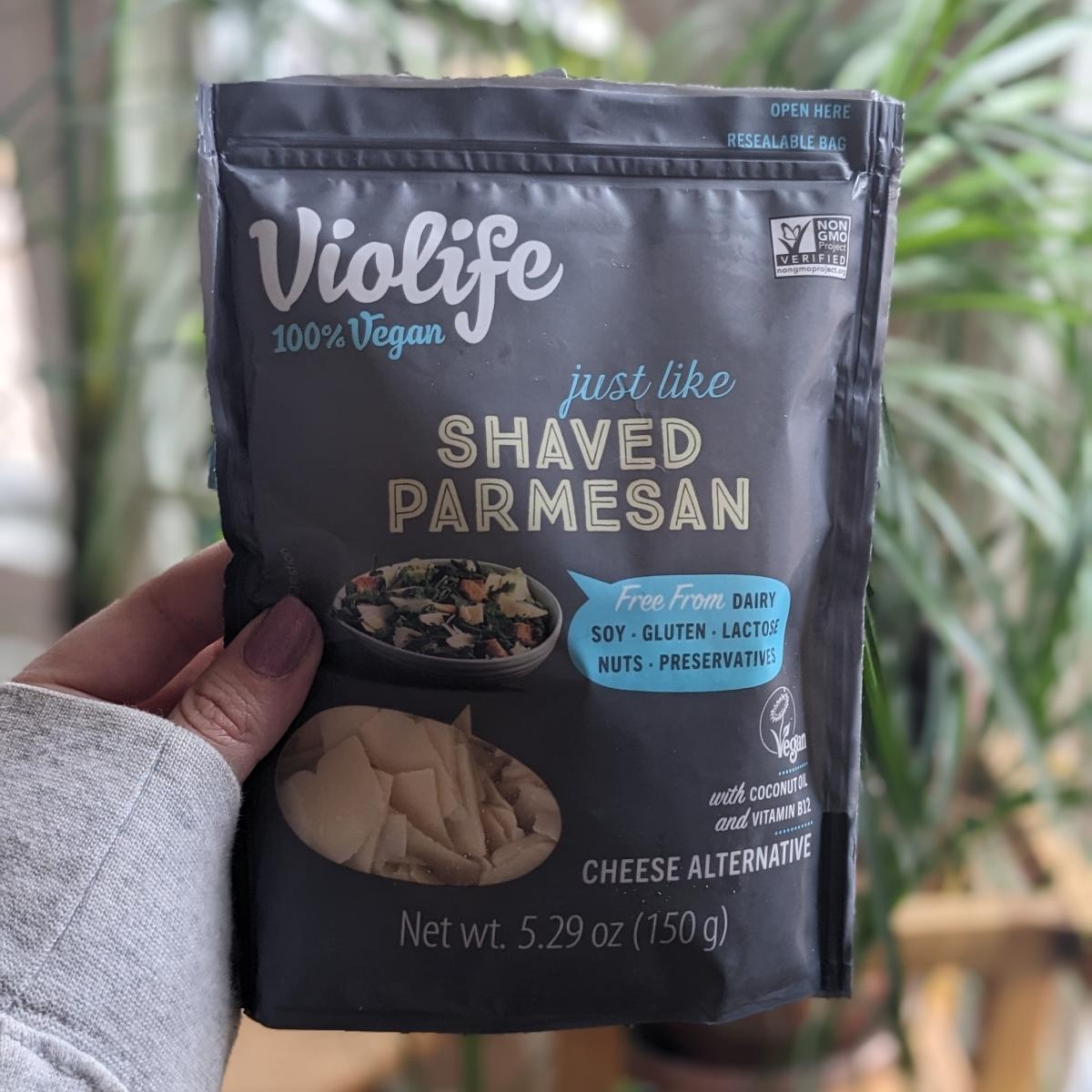 I've been really enjoying this alternative shape for parmesan. It's a bit more elegant, so it looks really nice on dishes! This parmesan is nice and stinky, but the taste doesn't stay with you long. It has a good dry texture that crumbles easily. I think it looks really nice on bruschetta, salad, and pasta. It perfectly complimented Trader Joe's cashew ravioli along with tomatoes and basil. It doesn't melt as well as the shreds, but I like it more for cold applications.