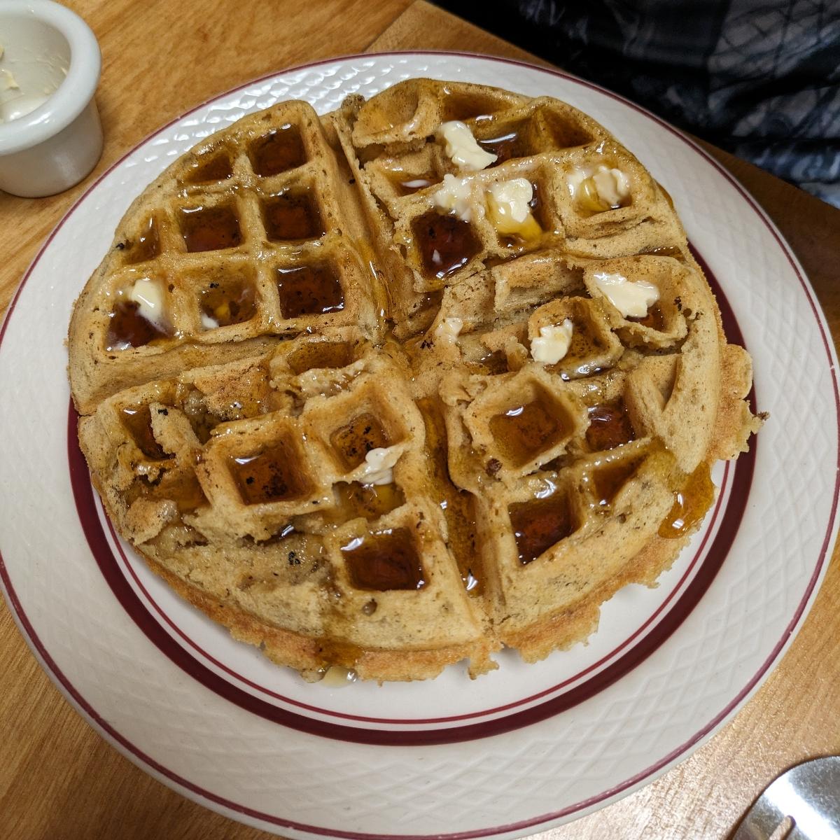 Love me some #waffles! This was very #cinnamon-y and light and sweet. Served with vegan butter and maple syrup. They serve breakfast all day!