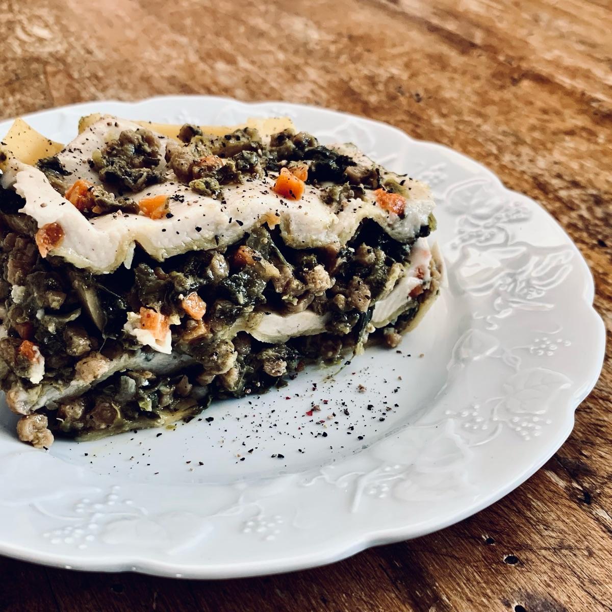 Santo cielo…! Ho già recensito la (terribile) versione al pomodoro con la quale la versione agli spinaci condivide due difetti: i fogli di pasta sono a volte troppo spessi e sono solo due (il ripieno sta nel mezzo); il ragù è terribile perché fatto con delle palline di soia troppo grosse invece che con i fiocchi. Detto ciò…questa variante per me è sicuramente migliore ma è davvero TROPPO SALATA…e per dirlo io, capretta amante del sale, ce ne vuole…! Come per l’altra versione: il margine di miglioramento è molto molto ampio.