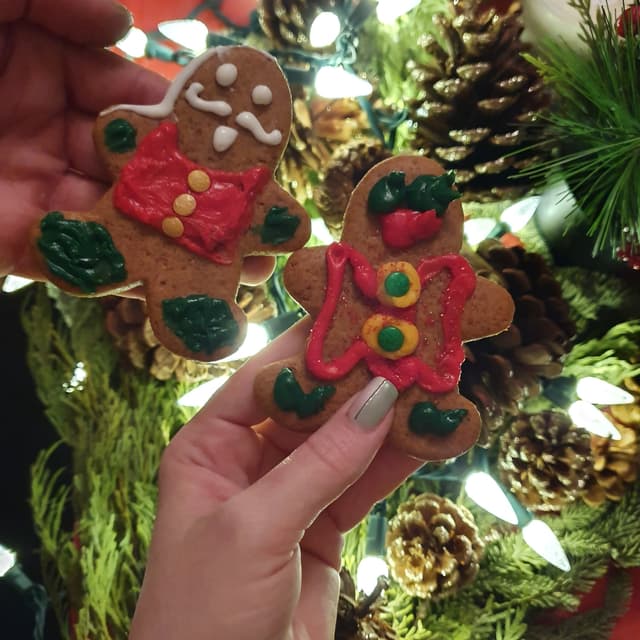 We loved these vegan and gluten free gingerbread cookies! The cookie is soft and sweet and is perfectly spiced! They lasted quite a while and did not get dry or stale. They were absolutely perfect for our gingerbread village. @paniwilson and I made gingerbread versions of ourselves #toocutetoeat