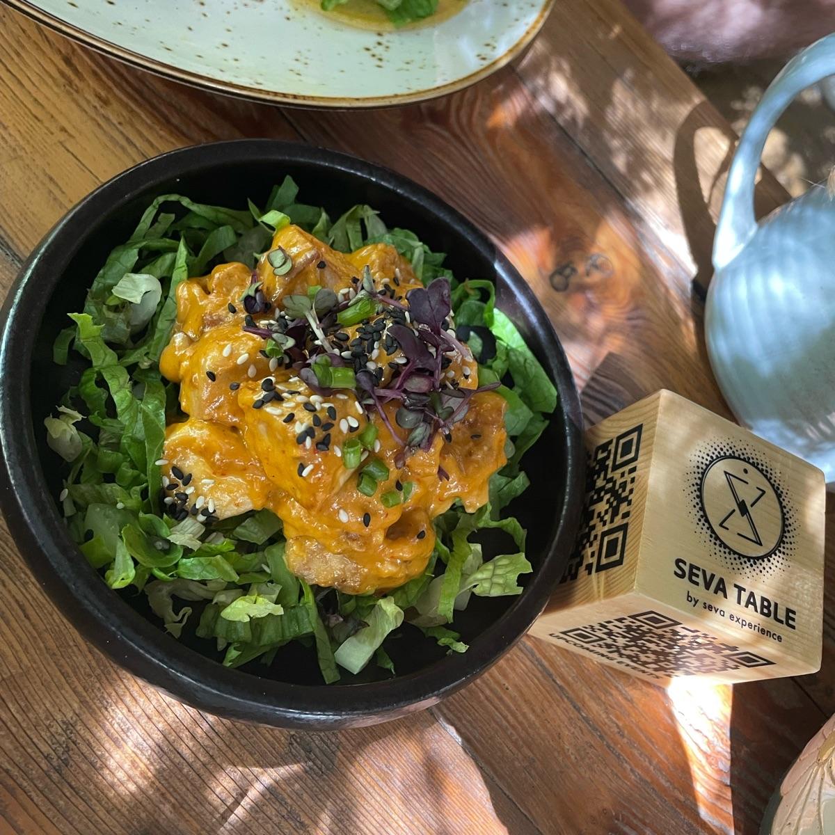 As per their menu “ a wholesome rendition of the popular tofu dynamite featuring firm tofu, homemade chipotle aioli, in house sriracha recipe, tamari, crisp romaine lettuce, sesame seeds, spring onions, and microgreens for a delightful, guilt-free indulgence”.