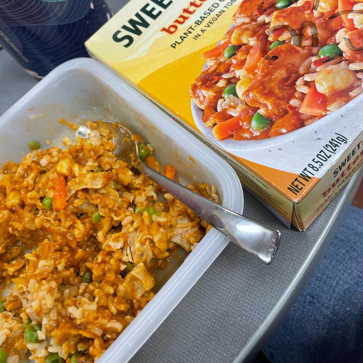 Tasty and easy vegan meal! Found at target for $3. The flavor is deep and aromatic with the slightest spiciness. It didn’t need anything added. Smaller portion so I had pepper slices as well for a well balanced meal. These aren’t always the healthiest but it’s soooo convenient for a quick meal.