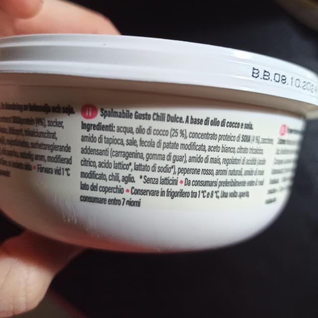 Formaggio spalmabile con un lieve retrogusto piccante, ottimo sul pane o per condire la pasta. È a base di olio di cocco