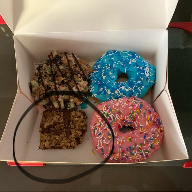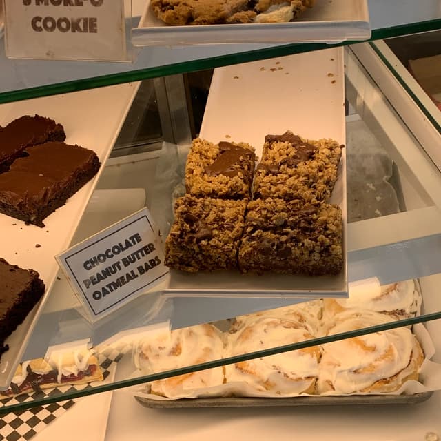 The fourth / last one I had was a delicious Chocolate Peanut Butter Oatmeal Bar. I got it as a quasi-healthier alternative to a 4th decadent donut. I’m not so sure it was healthier, but it sure was delicious. It was dense and not short on flavour.