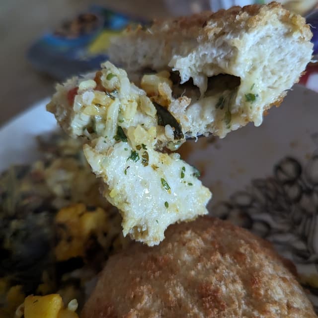 A little oily, great sour garlic cream tho. Texture is great. Tastes good. Recommend some sauce as it can be quite dry.