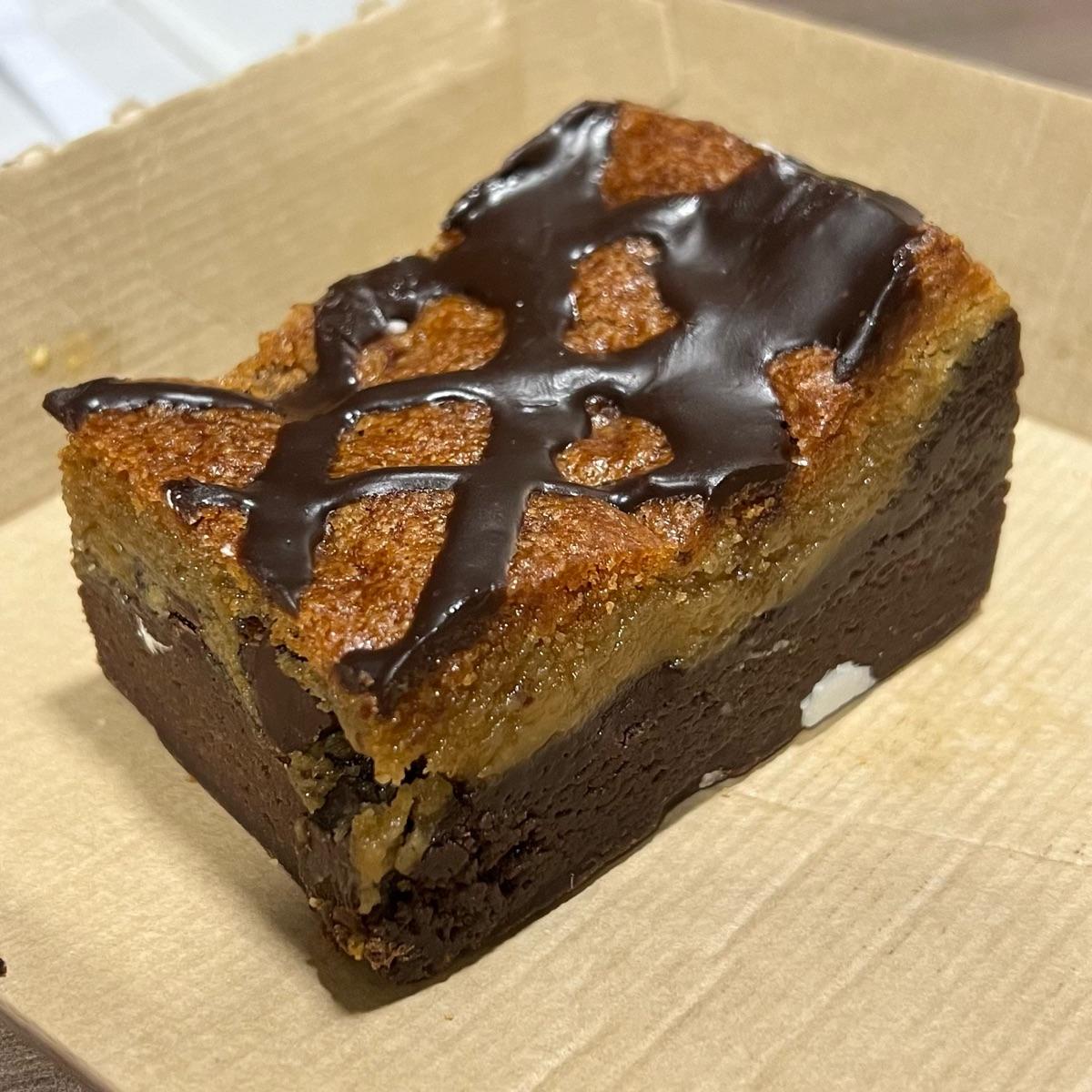 the cookie was a bit less flavorful; however, that may have been due to the richness of the brownie underneath. i did really enjoy the chocolate chips throughout the cookie though.