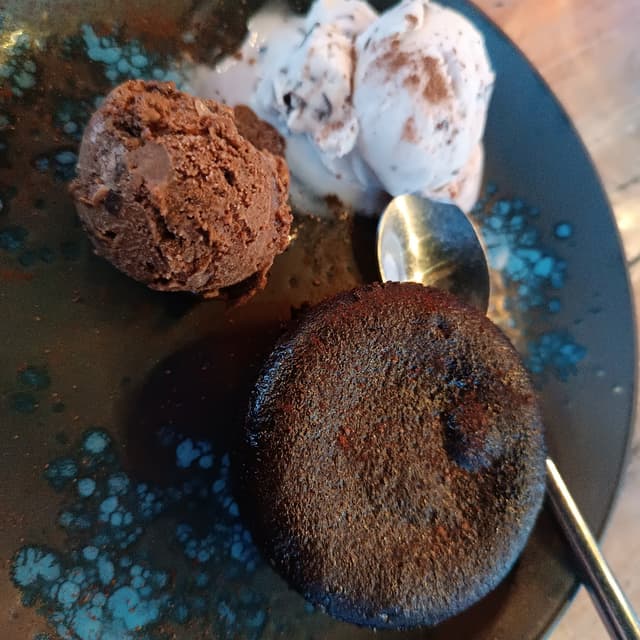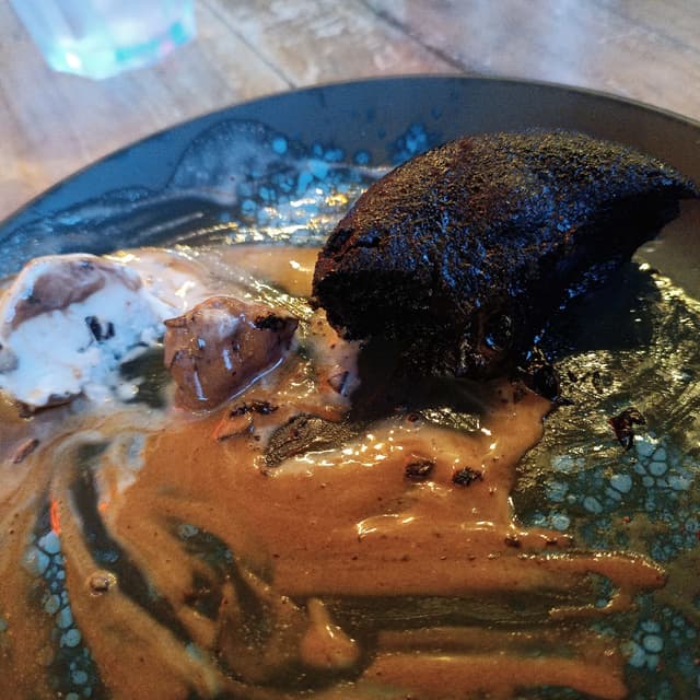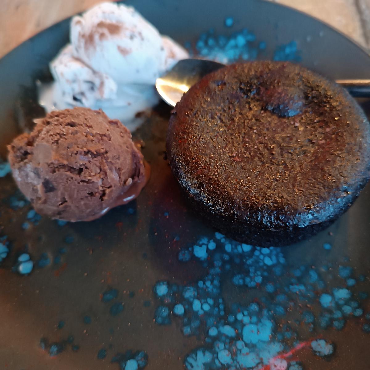 Coulant de chocolate... Delicoso... Se desace en la boca... Junto con las dos bolas de helado que estaban buenísimas #elhogar