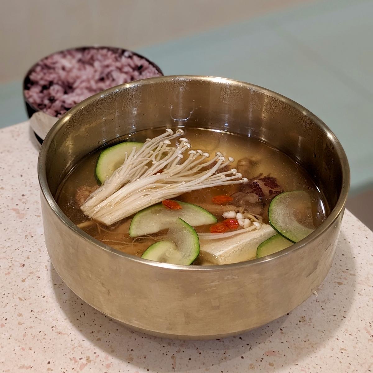 Ginseng 'chicken' soup with natural unprocessed ingredients such as lion's mane mushrooms, enoki mushrooms, tofu, and sliced zucchini in lieu of chicken or mock meat. 🍲🍄 The broth was cooked with ginseng, red dates, goji berries, and assorted herbs; definitely nourishing though it leaned towards being slightly bland in my opinion oops. Portion was on the smaller side too. (Especially compared to the menu picture depicting a bowl that was filled to the brim, expectation vs reality moment there teehee 👀) Came with wholegrain rice! 🍚 P.S. I visited during the opening week, so they might have been having teething issues; I believe they will keep improving~ 🤗 (Allium-free, $14.90) #sgvegan #koreanfood #alliumfree #wholefoodplantbased #wfpb