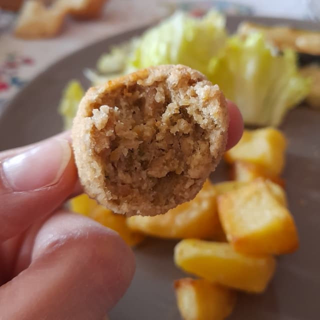 Non male questi falafel della Kioene, anche se molto speziati: le spezie non sono specificate tra gli ingredienti ma secondo me c'è il sapore forte di cumino e curcuma.