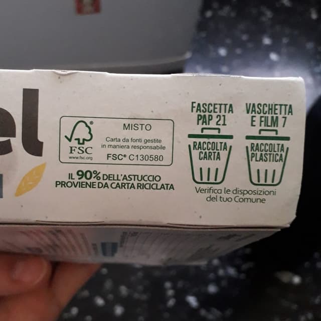 La confezione è composta da carta e da una vaschetta e film di plastica 7, quindi purtroppo non riciclabile... 😔
