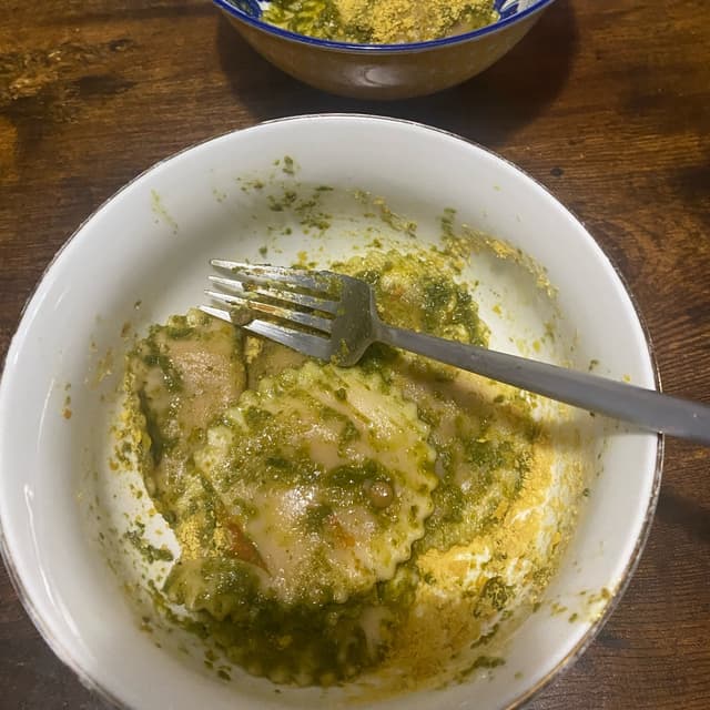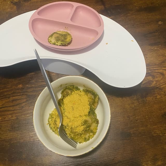 The bolognese is super tasty. We used a spring mix, garlic, lemon juice, nutritional yeast, and olive oil to make pesto. It was even approved by our 7M old. Thanks Trader Joe’s!