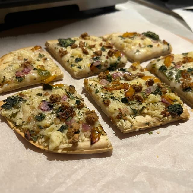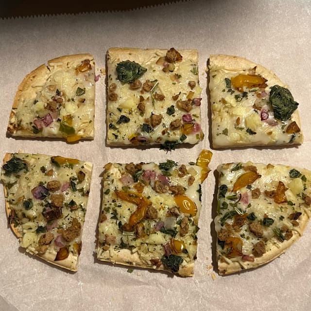 I liked this but I do wish there were more toppings. The cheese was good. The roasted peppers were good. The sausage was good. Kale wasn’t bad at all actually. If this was more affordable I might get this more often. I really like that it’s a smaller portion than their classic pizzas. They have a lot of sodium! Yikes!