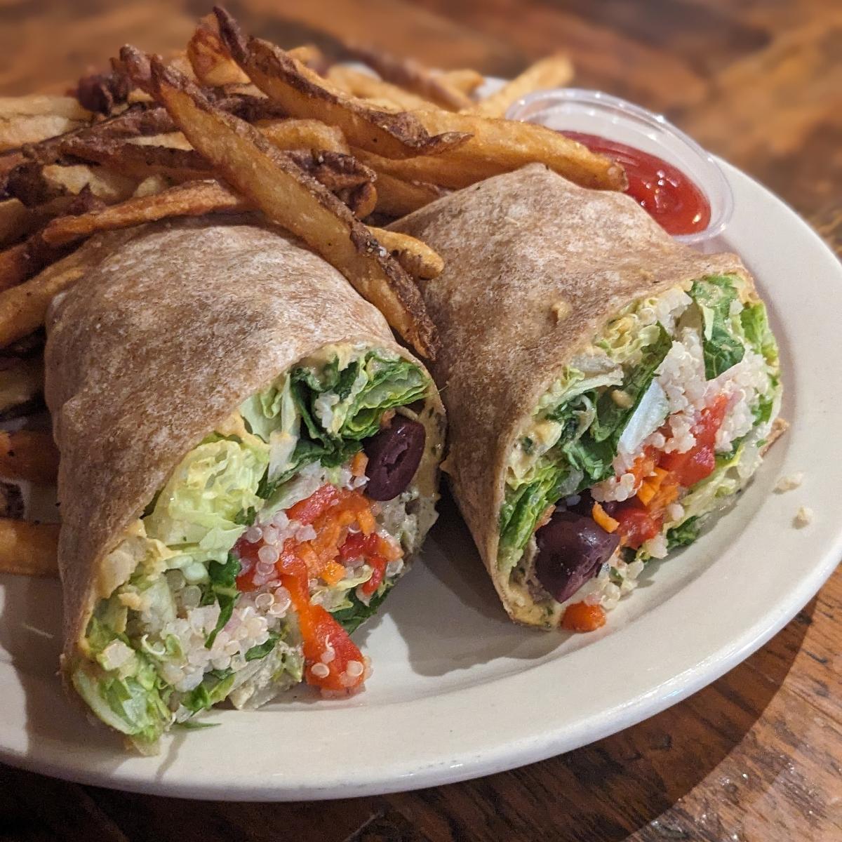 This is a nice refreshing wrap. This sprouted tortilla is stuffed with house-made organic hummus, organic romaine, carrots, quinoa tabbouleh, roasted red pepper, kalamata olives, and creamy garlic cashew dressing. All the veggies tasted really fresh and it made for a nice light lunch. The hummus and cashew dressing were really great. They were garlicky and added so much good flavor. I do wish there was an option to add a protein to the wrap such as seasoned tempeh or tofu. $16 for a veggie wrap is just a bit unreasonable imo.