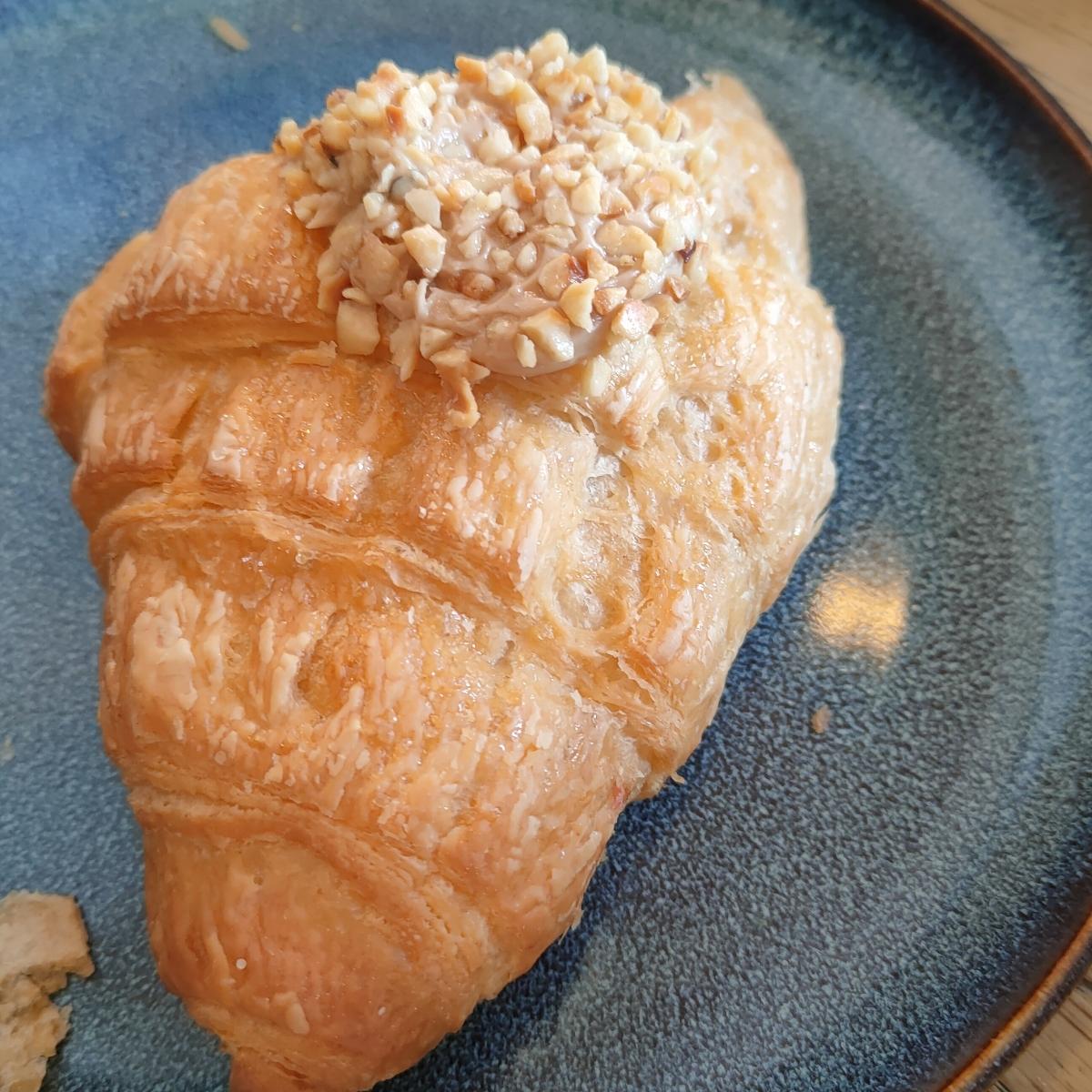 Cornetto con crema alla nocciola, davvero buonissimo gusto diverso dalla solita cioccolata o marmellata, ha davvero molte scelte vegane