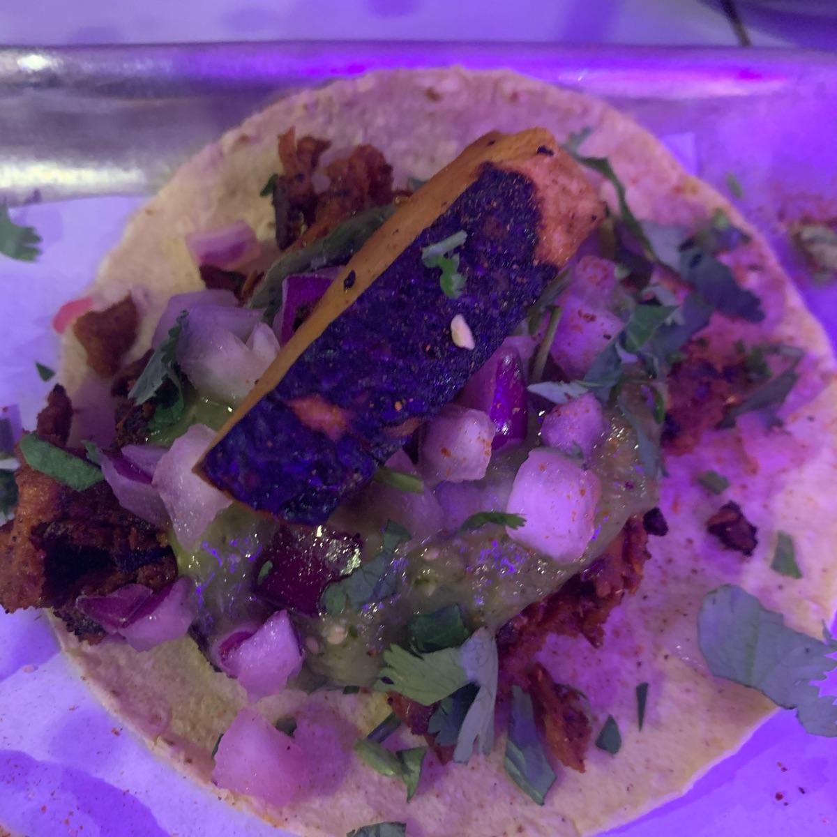 I loved all the tacos we had, and we made sure tried them all. This one was very authentic, it had adobo marinated shawarma, red onion, salsa verde, charred pineapple. Super yummy.