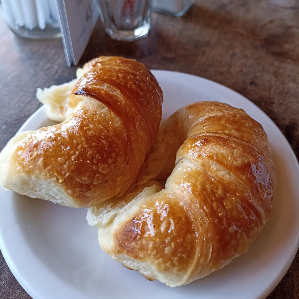 Las mejores medialunas veganas que comí en mi vida 😍😍 No se cómo hacen para que se parezcan tanto a las clásicas de manteca, no se nota la diferencia. Y el lugar uff qué decirles.. es mi café favorito de Bari. Me transmite mucha paz, rodeado de libros y construcciones de madera con una vista única al lago 🩵