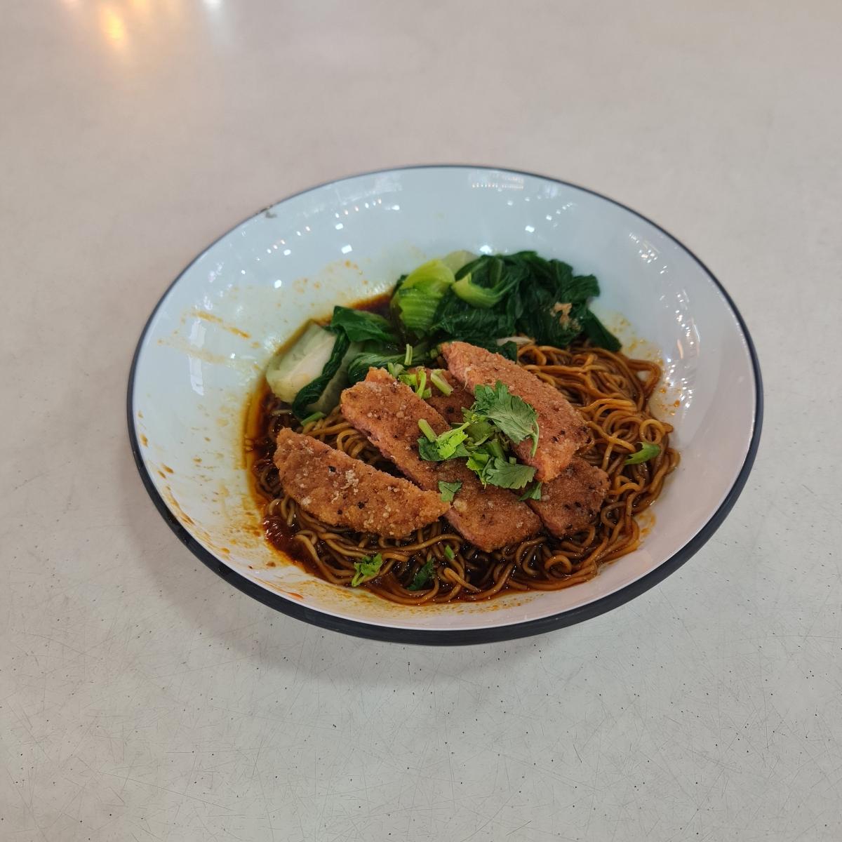 Under $7 and porky #pig approved (no hurt involved), #deepfried to a crispy meaty feast atop chewy #noodles (纯素, 我这里没有蛋的) rounded off with strands of #eatyourgreens. Its the same sweet sauce unfortunately (across all outlets, #carbsforlife dessert anyone?) Defo room for improvement in that regard