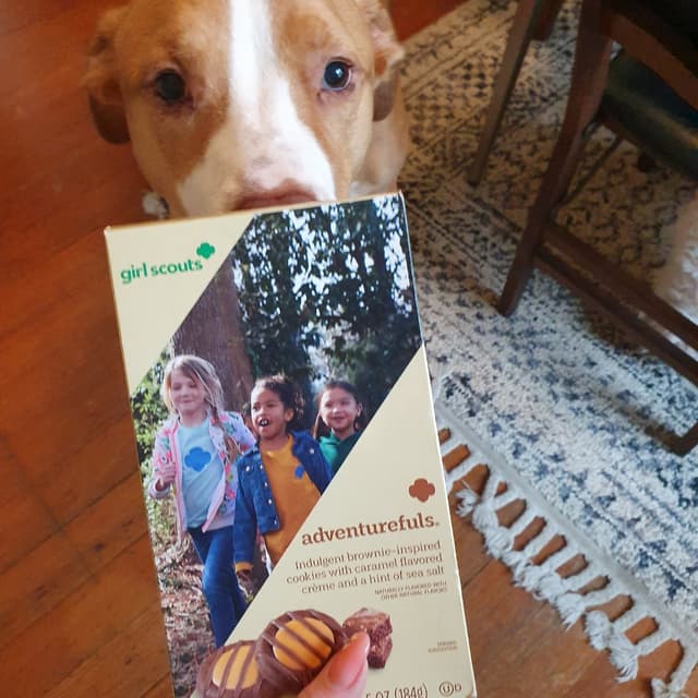 #veganisnotscary #veganin2024 #chocoholic #chocolate #caramel #sweettooth #dessert #vegandessert #girlscouts #girlscoutcookies #cookie #vegancookie #cookies #vegancookies #snack #vegansnack #feature #abillionlove #dogsofabillion