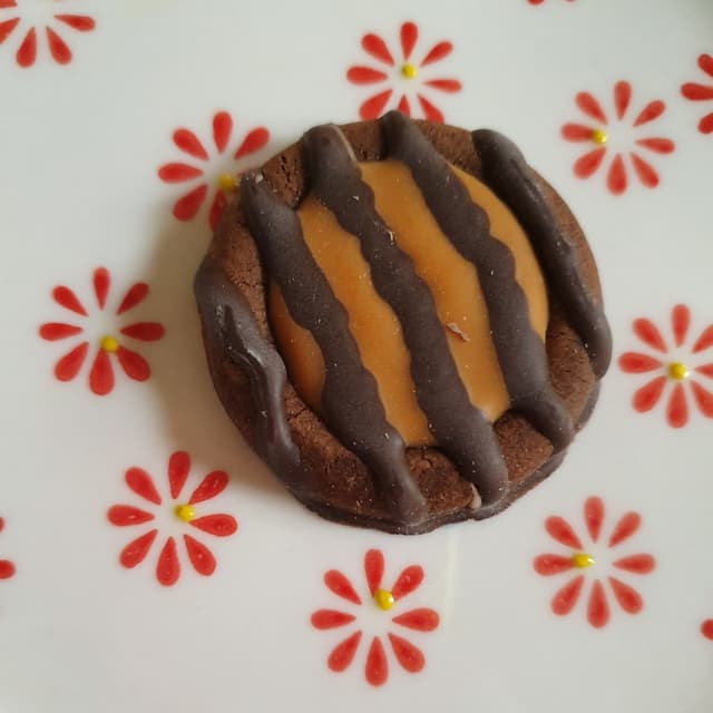 Sweet & salty cookies with a caramel crème center, sea salt and chocolate drizzle.