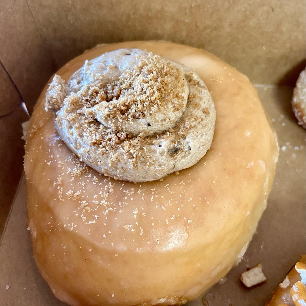 #vegandonuts love love adore this one! The maple is fantastic and not subtle but doesn’t punch you in the mouth either. I would absolutely get it again (and will). Almost everything here is vegan—any th ing on a black tray isn’t. 🍩