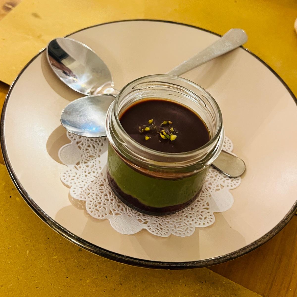 Dolce a base di more di gelso e strato di pistacchio. L’ho trovato personalmente un po’ piccolo e me lo sarei aspettato più croccante. Comunque nell’insieme era un mix di creme ed era molto buono