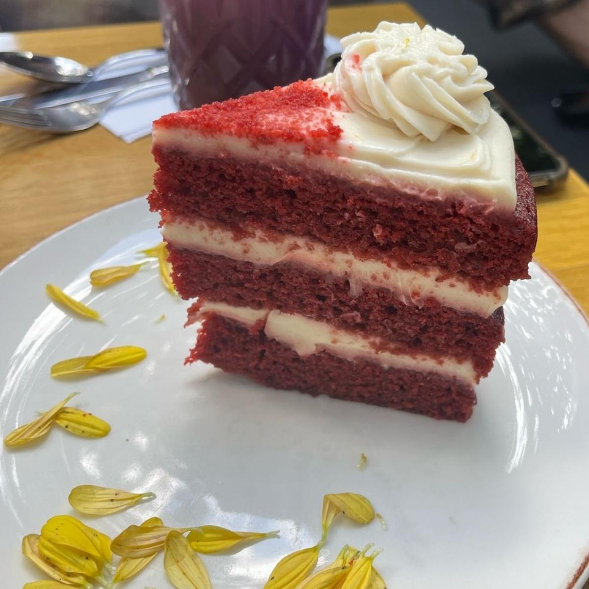 Bizcocho húmedo aterciopelado, relleno de frosting de queso de tofu aromatizado con naranja