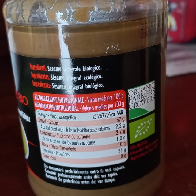 Tahina integrale con una consistenza fluida.Ottima per l'hummus,o per condimenti per verdure o insalata,o da spalmare sul pane.Ottima fonte di #omega3
