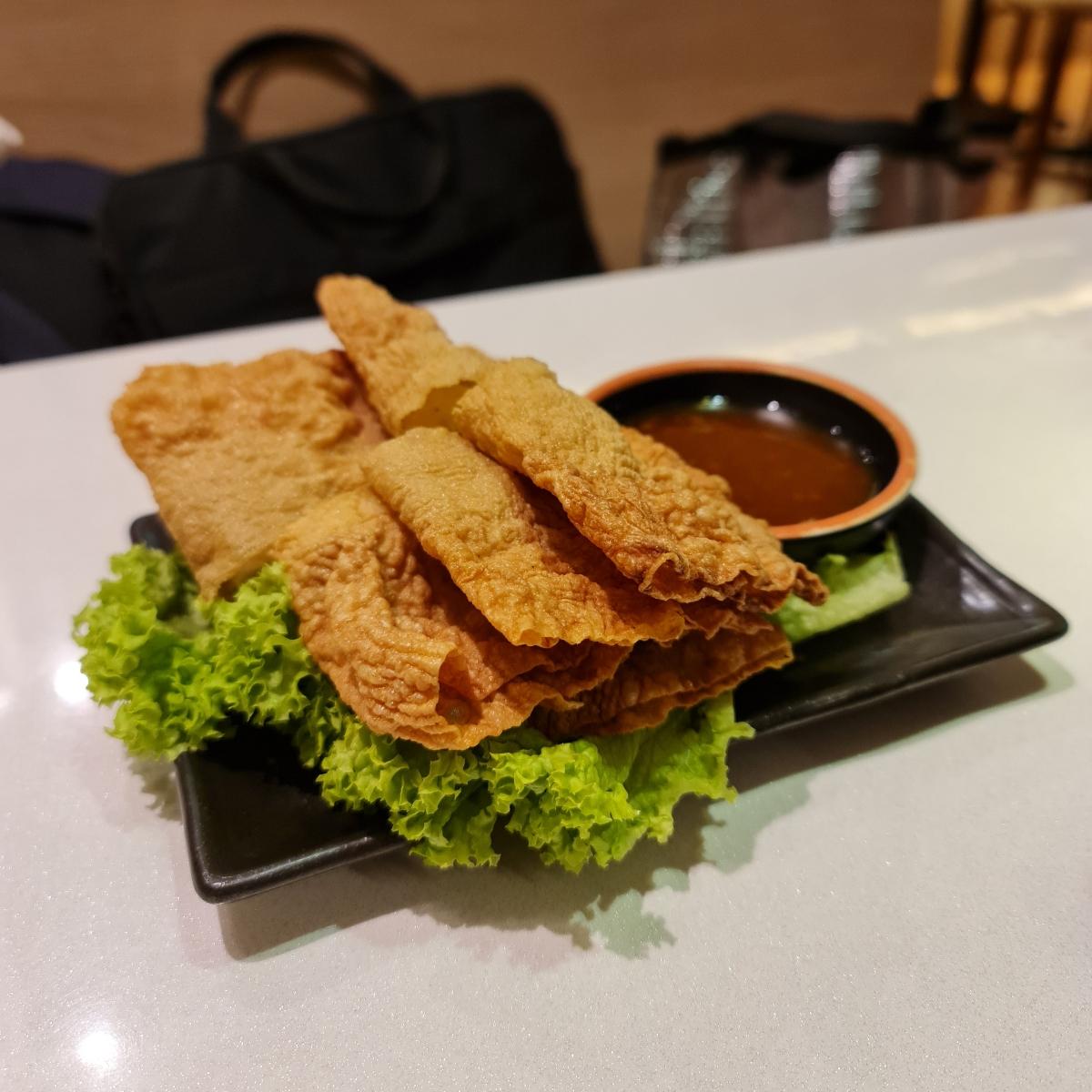 Crackling hill of #sweetdreamsaremadeofgrease #tofu skin embedding bouncy fishcake in the form of chewy #konjac and starches with a side of reddish looking, forgettable (on my part) dip (let's not get into that). Fitting portion and pricing, no complaints there other than the singular buck more for better ambience 😛. See 👇