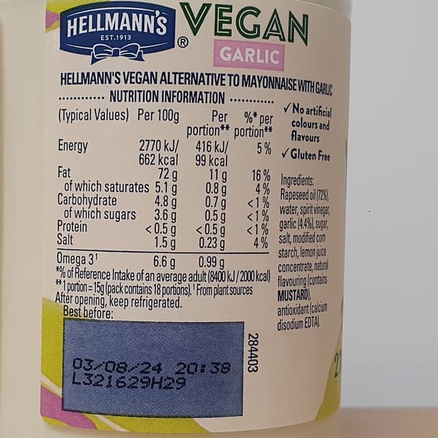 I bought this when I was in London; I've only seen it sold online in Spain. It's similar to this brand's mayonnaise (reviewed): intense with a thick texture. Yet, you can taste a hint of garlic. It goes well with baked potatoes and in sandwiches.