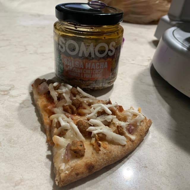 this is a very unique (and tasty) #salsa. there are a lot of seeds in it plus mango and pineapple. it helped doctor up a frozen pizza, great #sandwichspread, nice touch on quesadillas, . . .