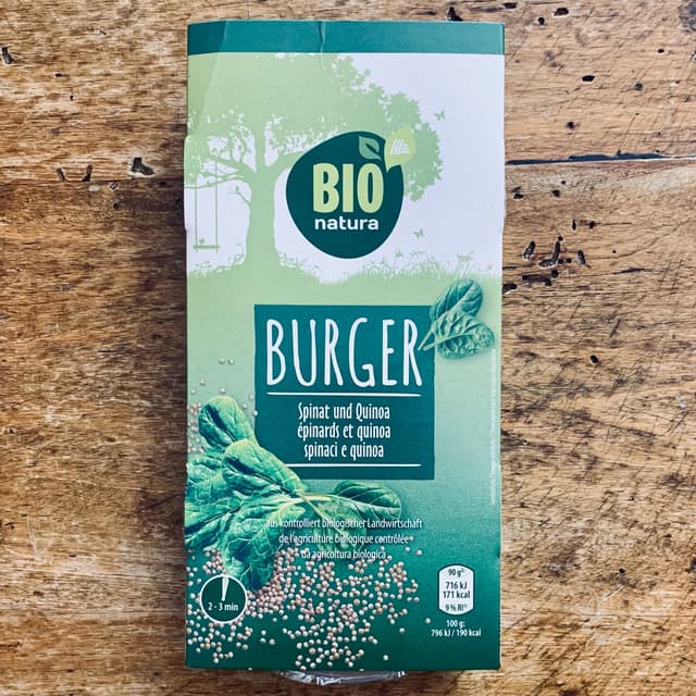 Burger biologici molto buoni del tipo che piace a me, ossia spessi, compatti ma morbidi e composti da verdure e legumi. Per quanto riguarda la preparazione, basta scaldarli al microonde o passarli per qualche minuto in padella antiaderente senza aggiunta di olio. Preferisco la versione con ceci e pomodori ma anche questi con spinaci e quinoa sono buonissimi. All’interno della fascia di carta i due burger sono confezionati singolarmente in vaschette di plastica con pellicola - è comoda la possibilità di poterne aprire uno solo ma basterebbe usare dei materiali compostabili…!
