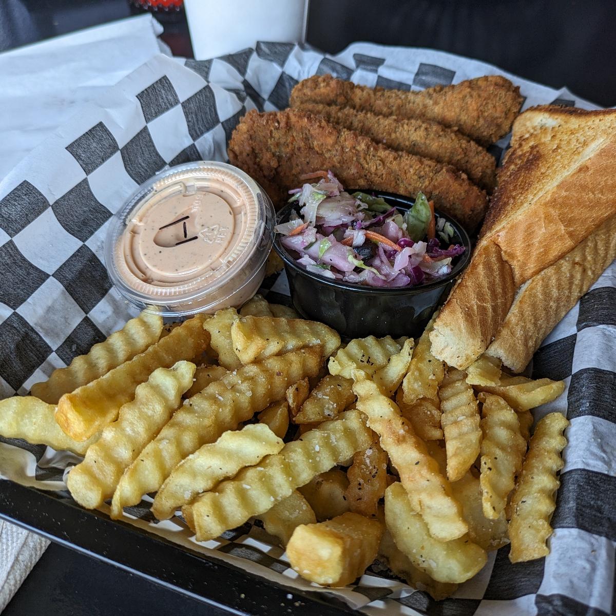 Love everything at @seitansrealmcbus but this was exceptional! I was an Ohio State student before going vegan so I hate to say that I did frequent Cane's, but this vegan version is so much better (tastier and more humane!) and so #nostalgic! The Cane's sauce is spot on, the #toast is buttery and cooked to perfection, the #veganchicken as always has a great flavor and texture, and the #fries were seasoned so well. If you haven't tried this yet - do it!