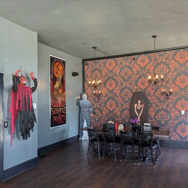Also got to see the new space Seitan's realm expanded into, and it is so fun! Love the new posters and both old and new horror themed decorations. Such a fun atmosphere!
