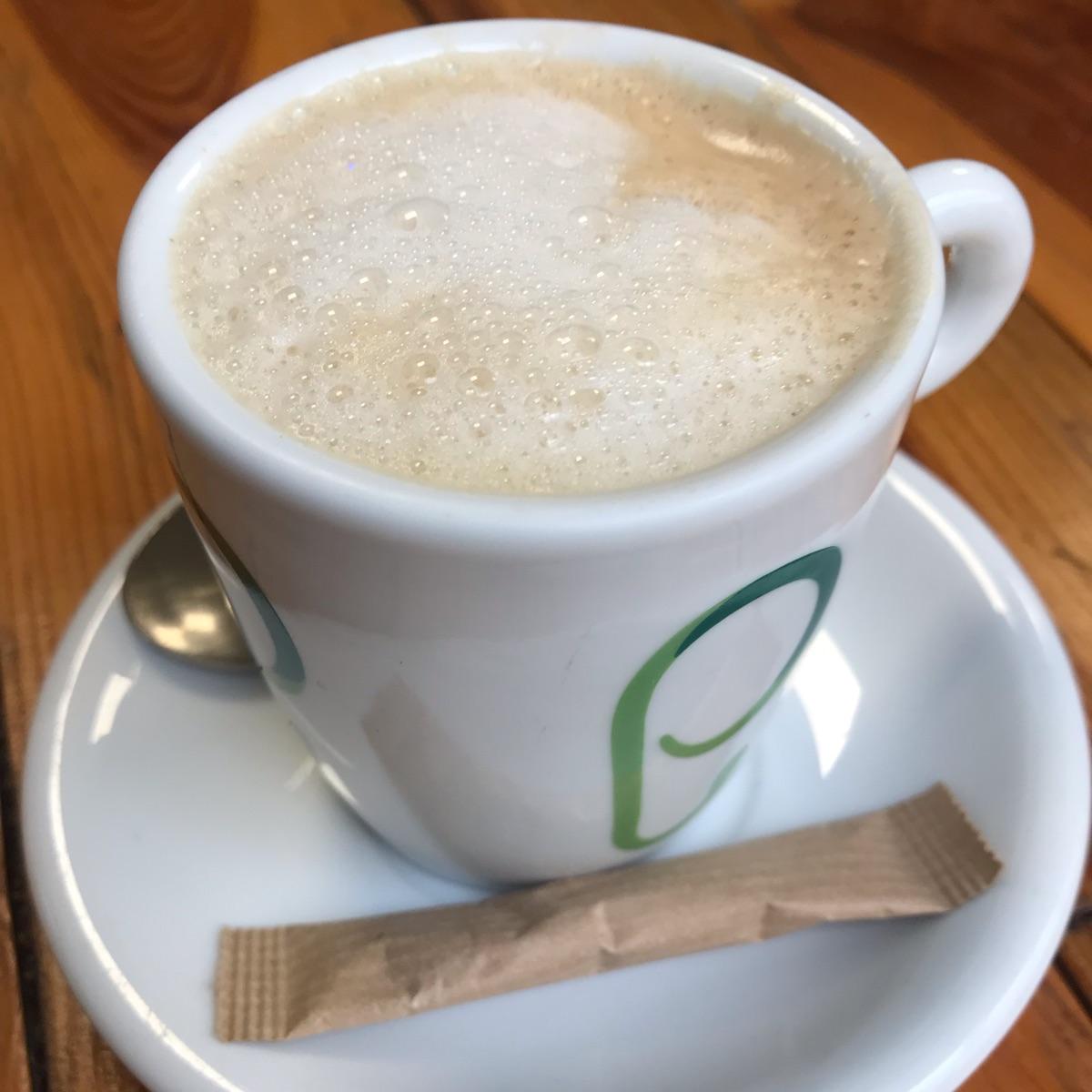 The froth was a bit weak and the coffee too hot and slightly burnt, so it was a bit bitter as a result. More care and skill needed here.