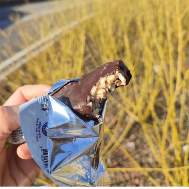 Barretta di riso integrale soffiato ricoperta di cioccolato, tanto semplice quanto buona. Il riso essendo integrale è aromatico e saporito, la copertura spessa e non troppo dolce. Presa da Lidl. Costo 0,39 euro.