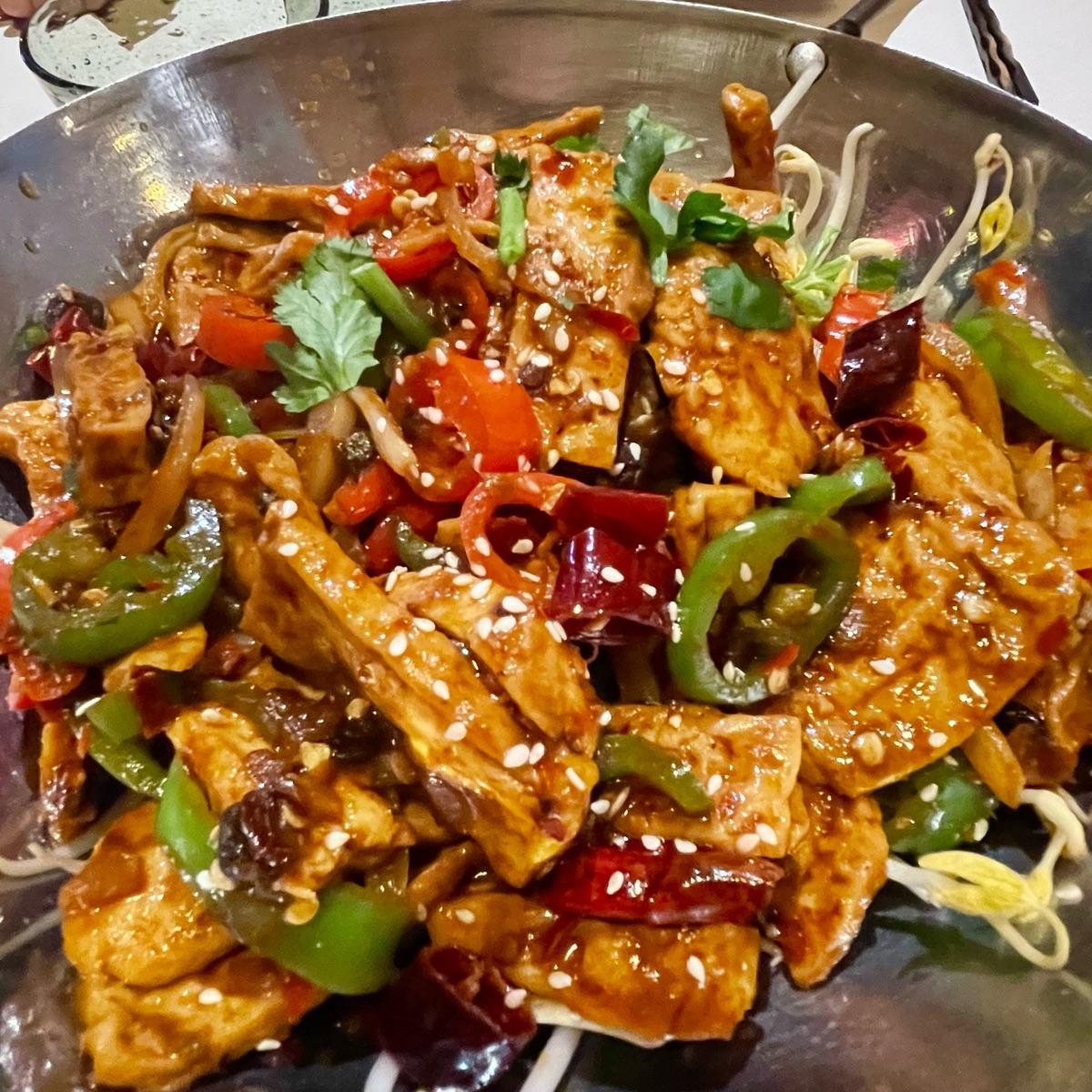 Piatto già vegano all’interno de menú, nonostante sia possibile veganizzare anche le altre opzioni con pollo presenti, sostituendolo con quello vegetale.