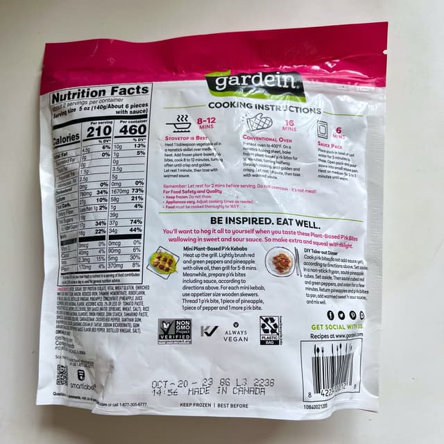 I suspect they’re probably the same #frozen #veganpork product, perhaps made with fewer though larger pieces. I once again prepared it on the stovetop, this time sautéing the bites with some julienned cabbage and carrots. I stand by all of the comments from my previous review: overall, delicious! The #fakemeat/#meatalternative bites have an enjoyably chewy texture, though I still found the #sweetandsour sauce a bit too sugary. I recommend starting with half the packet and gradually adding more as needed.