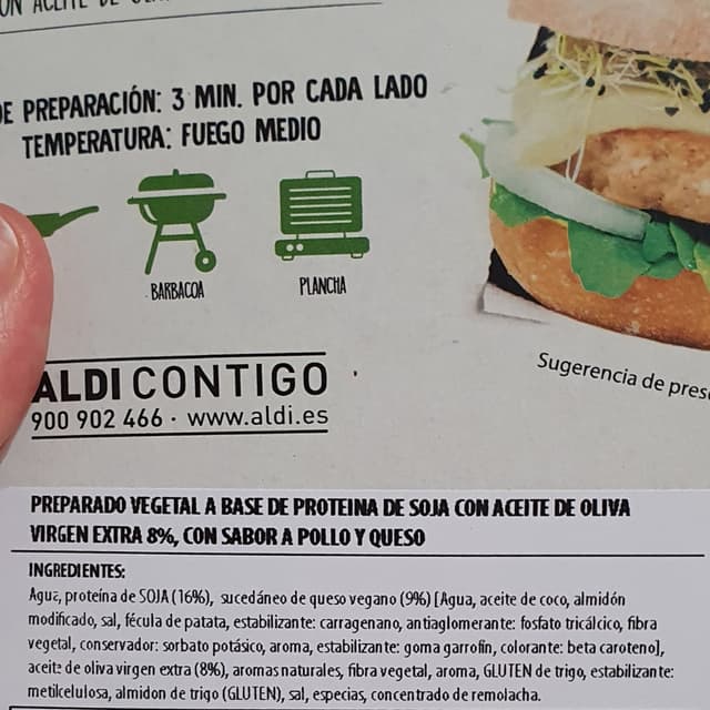 These tasted pretty much the same as Aldi's plain vegan chicken burgers (reviewed); I barely tasted the supposed cheese, if at all, though I enjoyed their chicken-ish taste. Overall, they are of a firm consistency, which facilitates their cooking. They also work and cook well crumbled. I would repurchase.