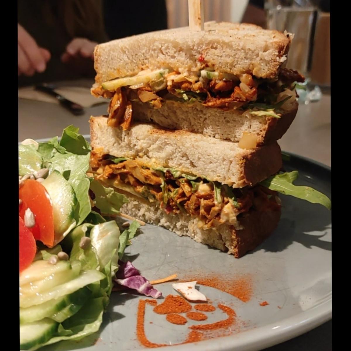 Very good taste. Enjoyed eating it. The bread is too thick and was taking away from the taste of the filling. So I split it in half. Have to say, very pricey for a sandwich however!