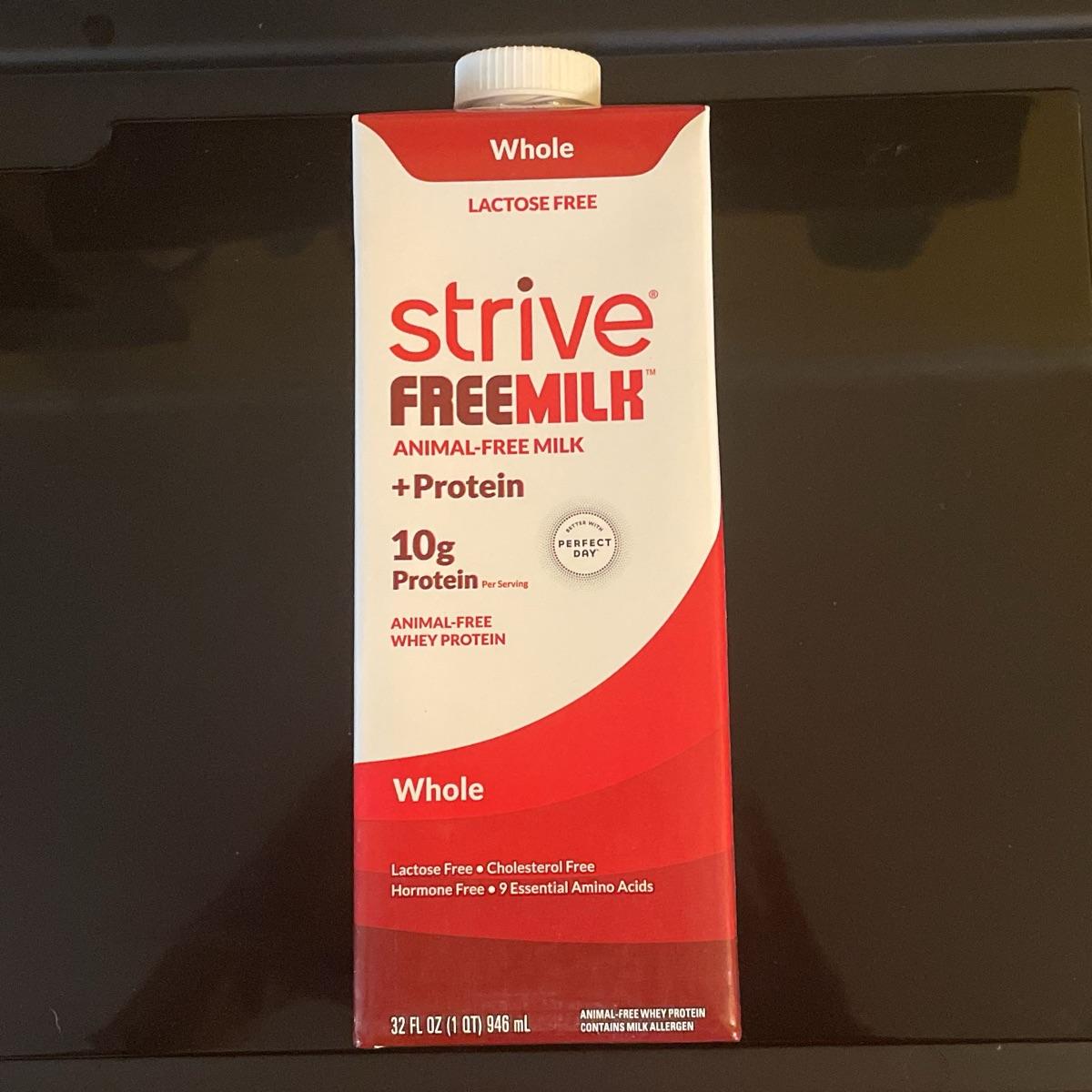 It is lab dairy without cows!! Taste is identical to whole milk and even cleaner tasting!! More whey protein than cow’s milk, The viscosity is slightly thicker than regular milk. This stuff is poised to be a game changer in the milk alternative category!! 130 calories, 10g protein per 8 oz. Serving.