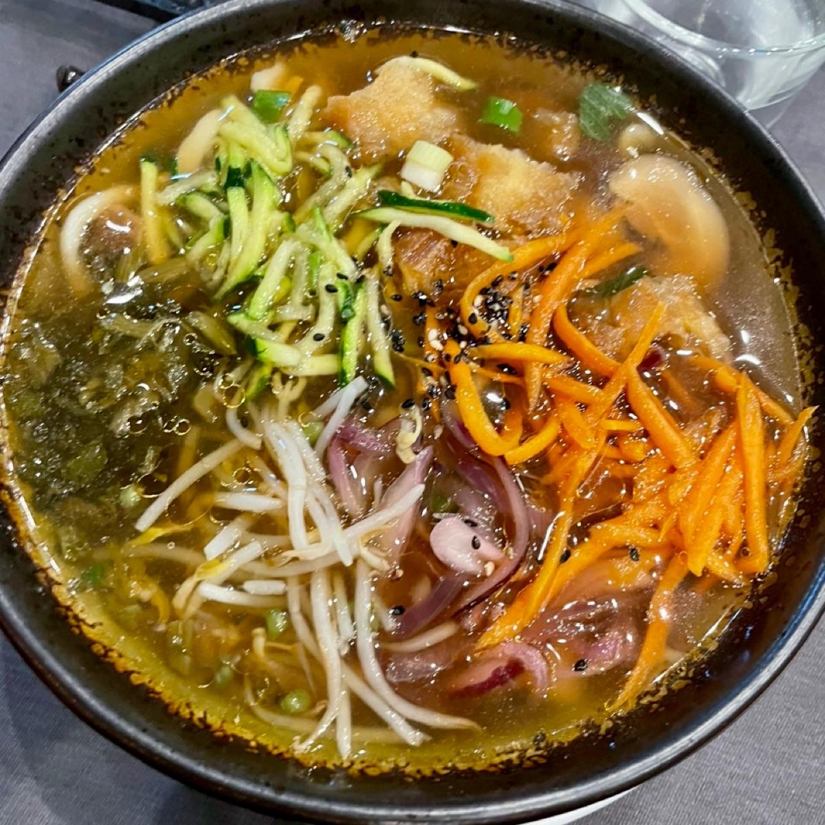 Il brodo è abbastanza buono, nonostante ciò si sente la mancanza di una fonte proteica vegetale all’interno del piatto